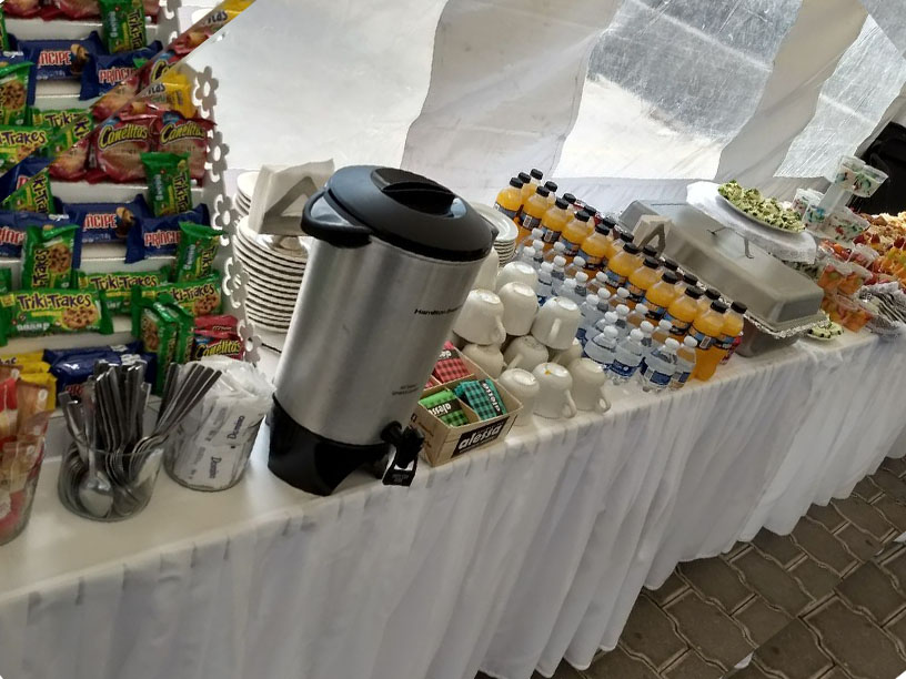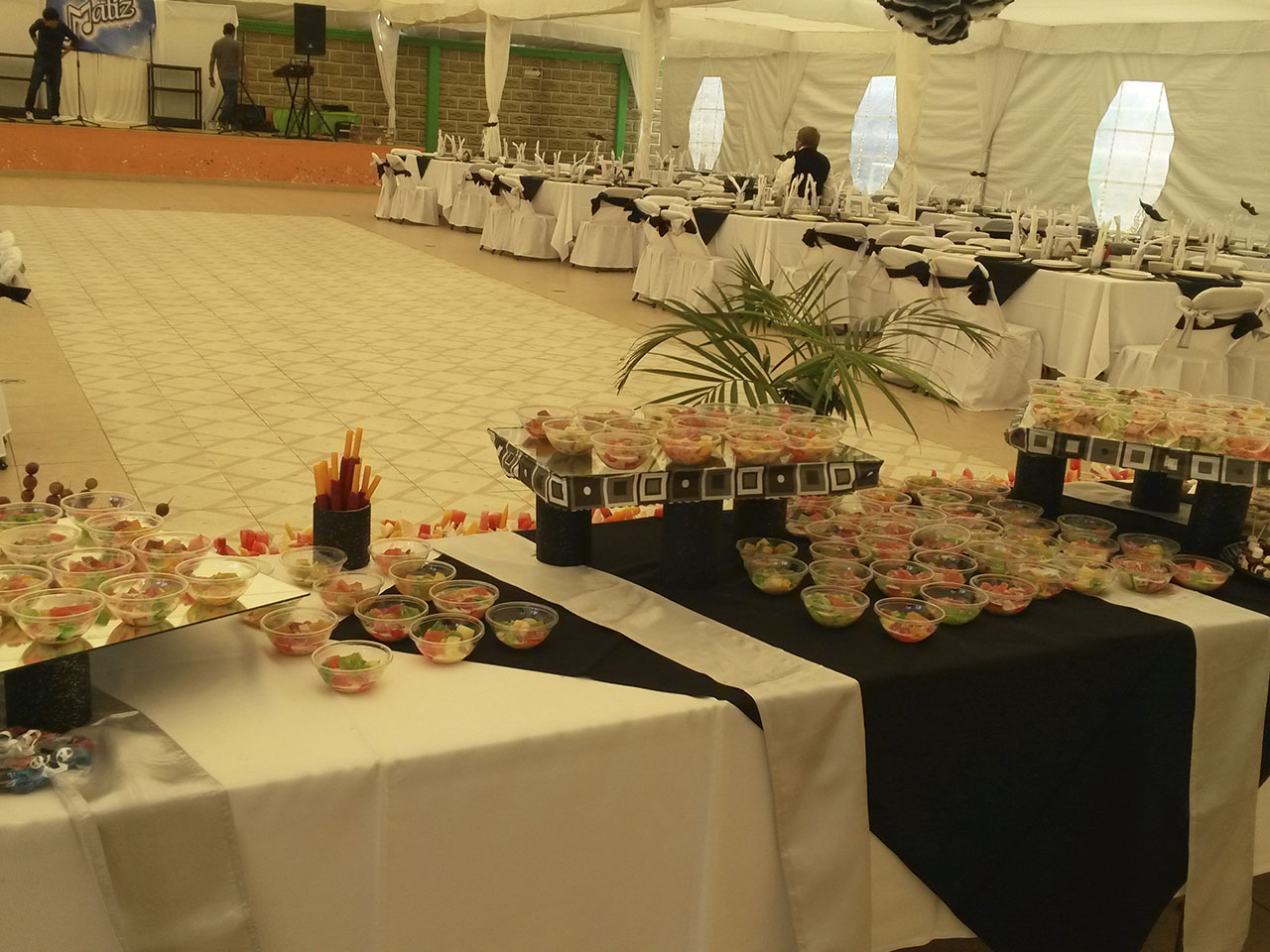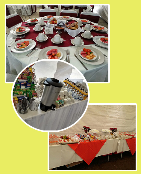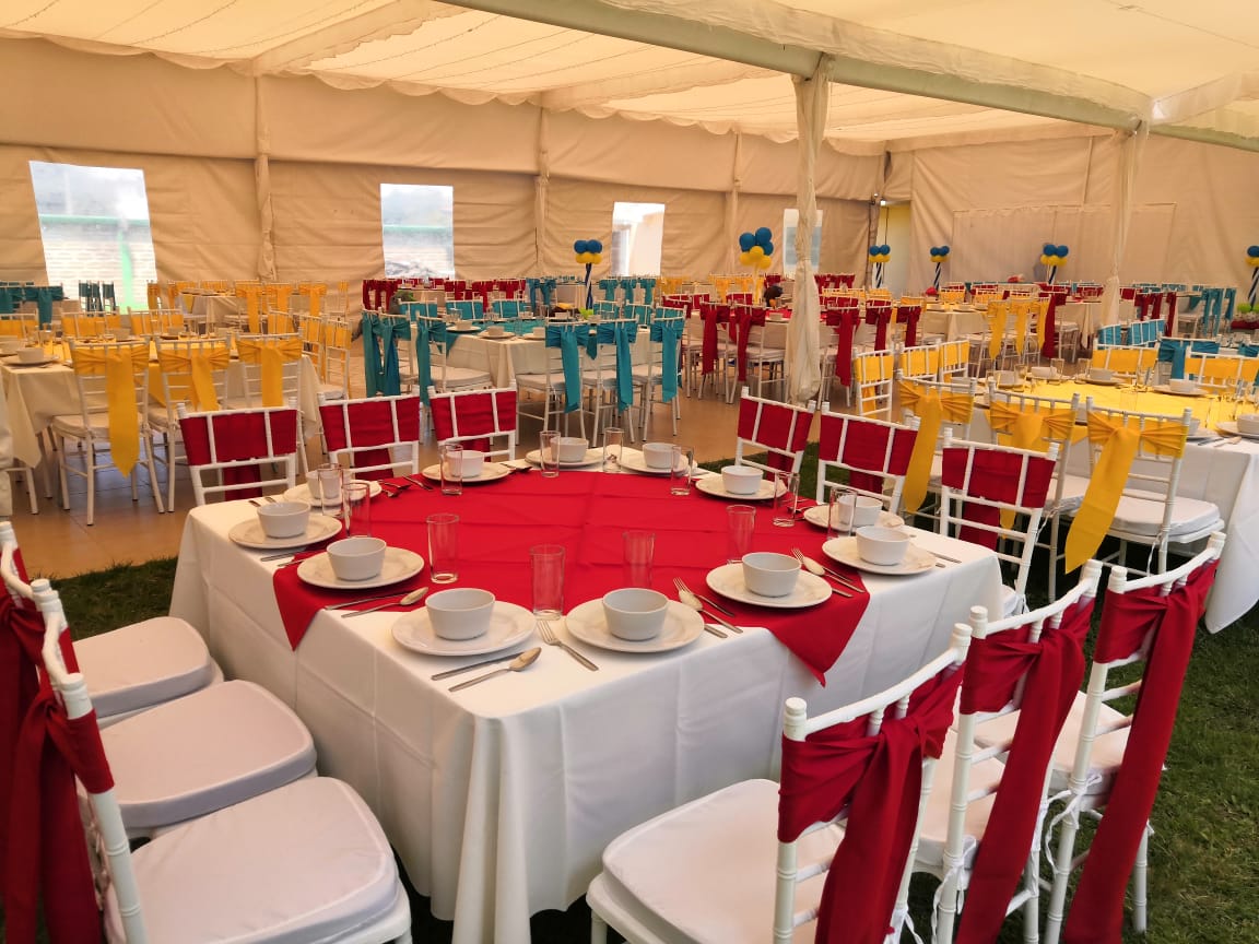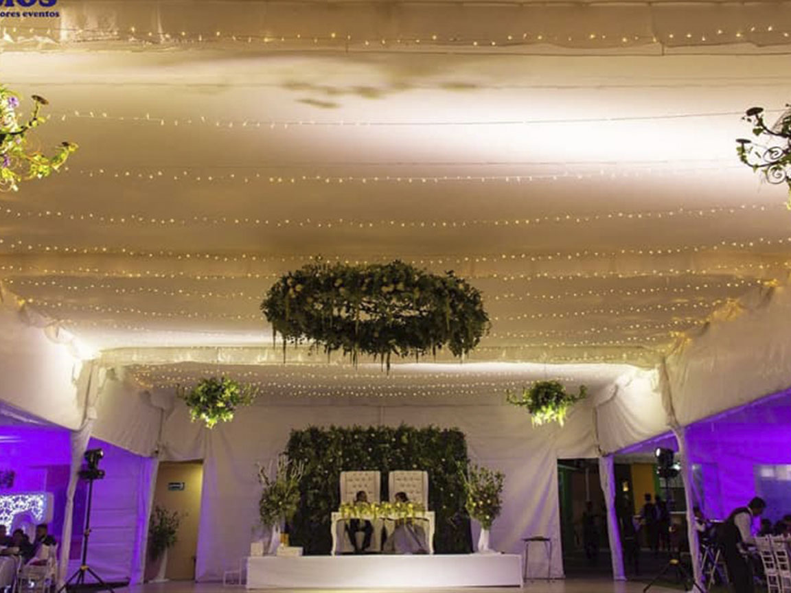 Salón Jardín $8,900.00 con mesas y sillas para 150 personas.