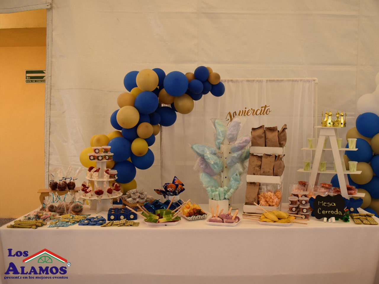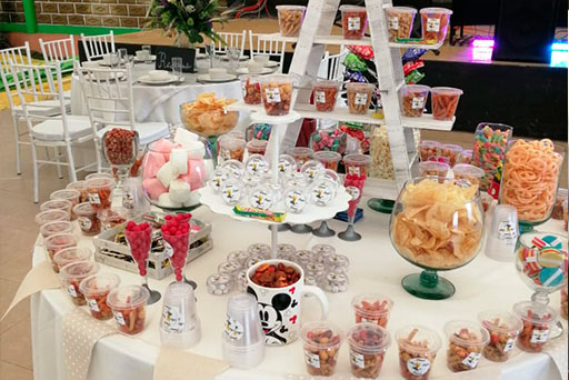 Recepción con sala, apta para colocar cuadro fotográfico, libro dedicatorio, árbol con tarjetas dedicatorias y control de ingreso de invitados.